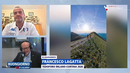 Il consigliere regionale (Forza Italia) Marco Polimeni e il Tedoforo Francesco Lagatta intervengono nella trasmissione in diretta dalla suite aeroportuale di Lamezia Terme.