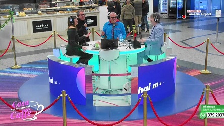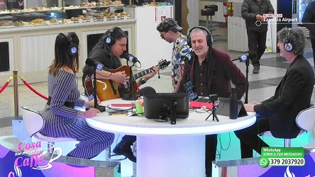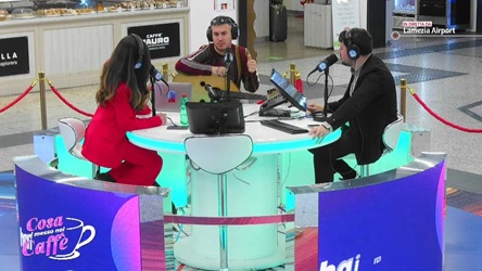 A indossare le cuffie di LaC OnAirport oggi sono DJ Cesko, l'attrice Francesca Brandi, il sindaco di Borgia Elisa Sacco e il Presidente della Calabria Film Commission, Anton Giulio Grande.